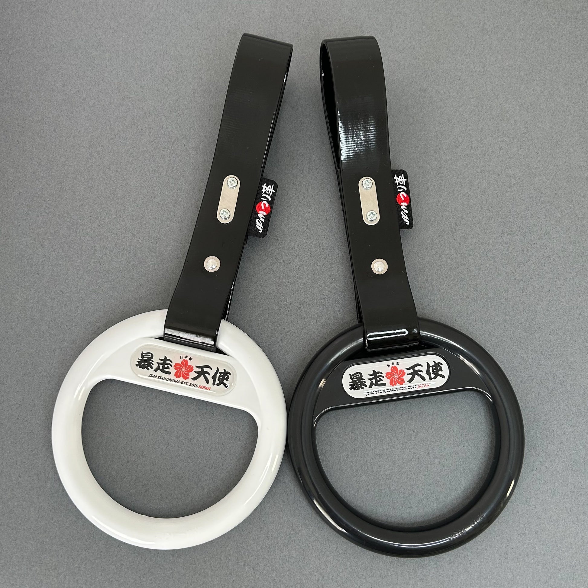 「暴走天使」ロゴ付きのオリジナルつり革です。