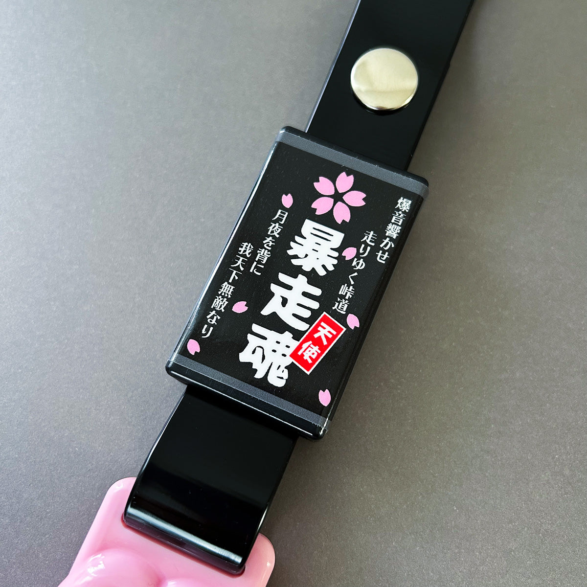 「暴走魂」の広告付き、オリジナルつり革です。