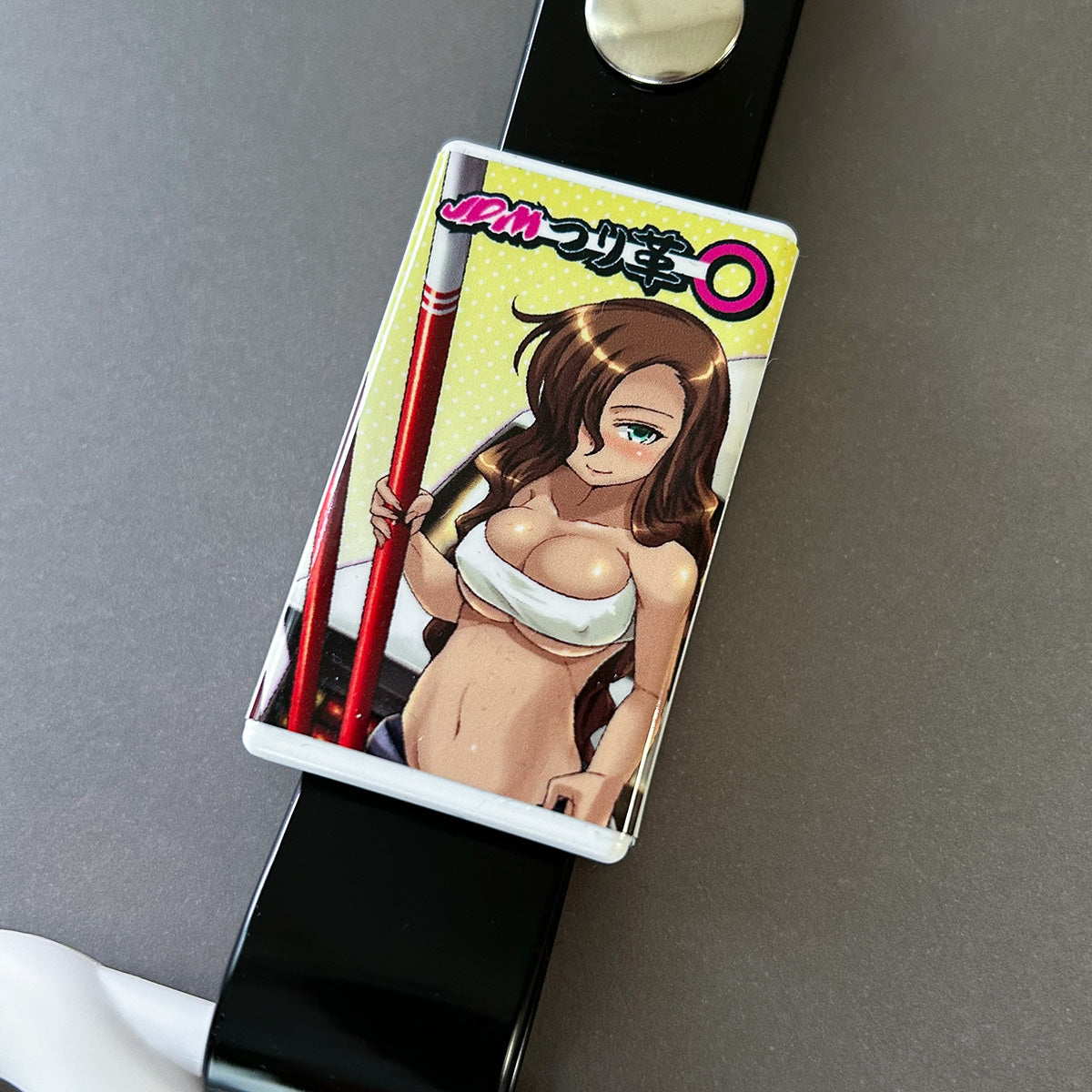 つり革娘「Mio」の広告付き、オリジナルつり革です。Mioは当店のイメージキャラクターです!