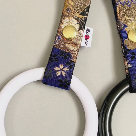 ストラップ部分は扇面柄と桜をあしらった美しいデザインで、上品な雰囲気を演出します。