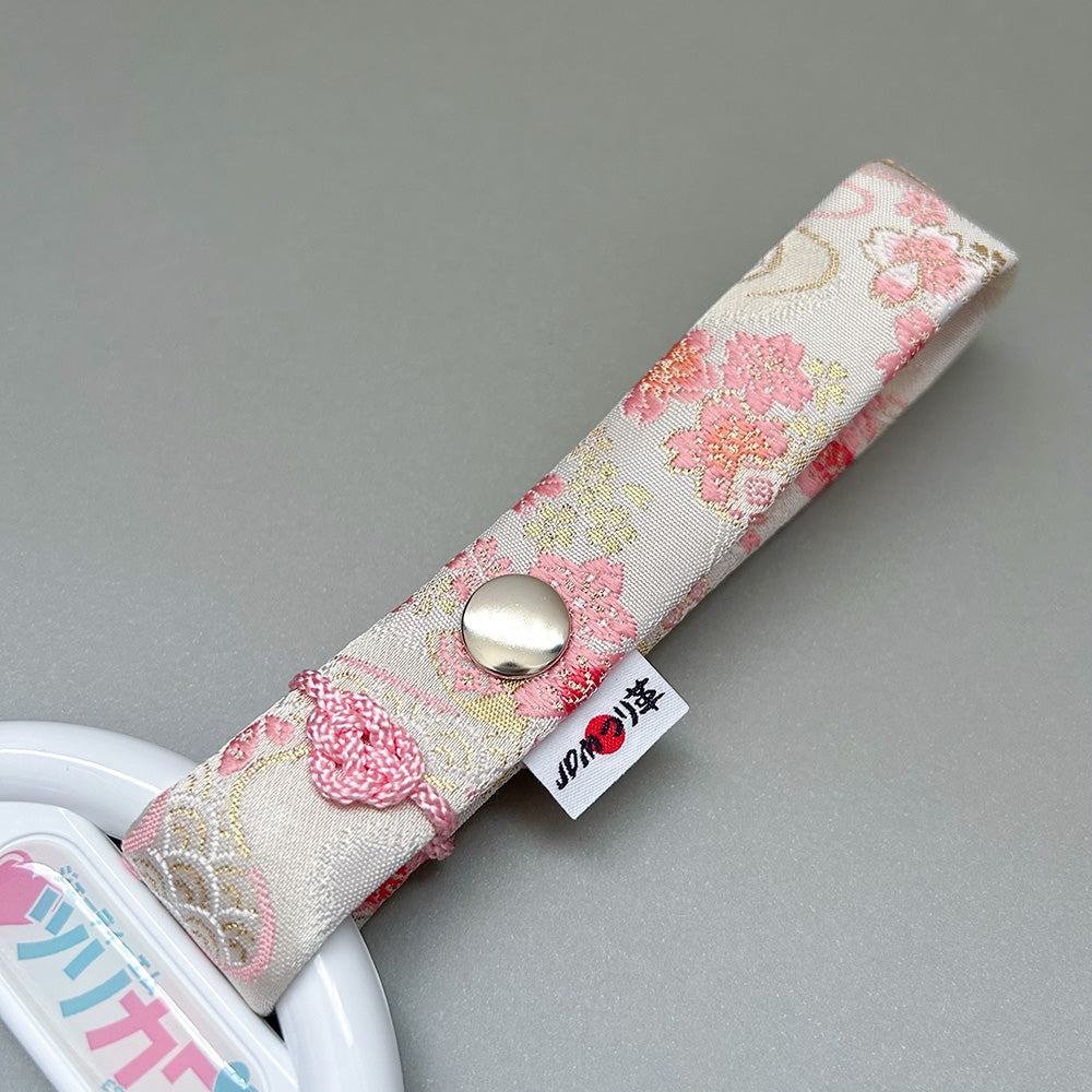 流水桜柄をあしらった、明るくかわいらしい色使いのストラップです。