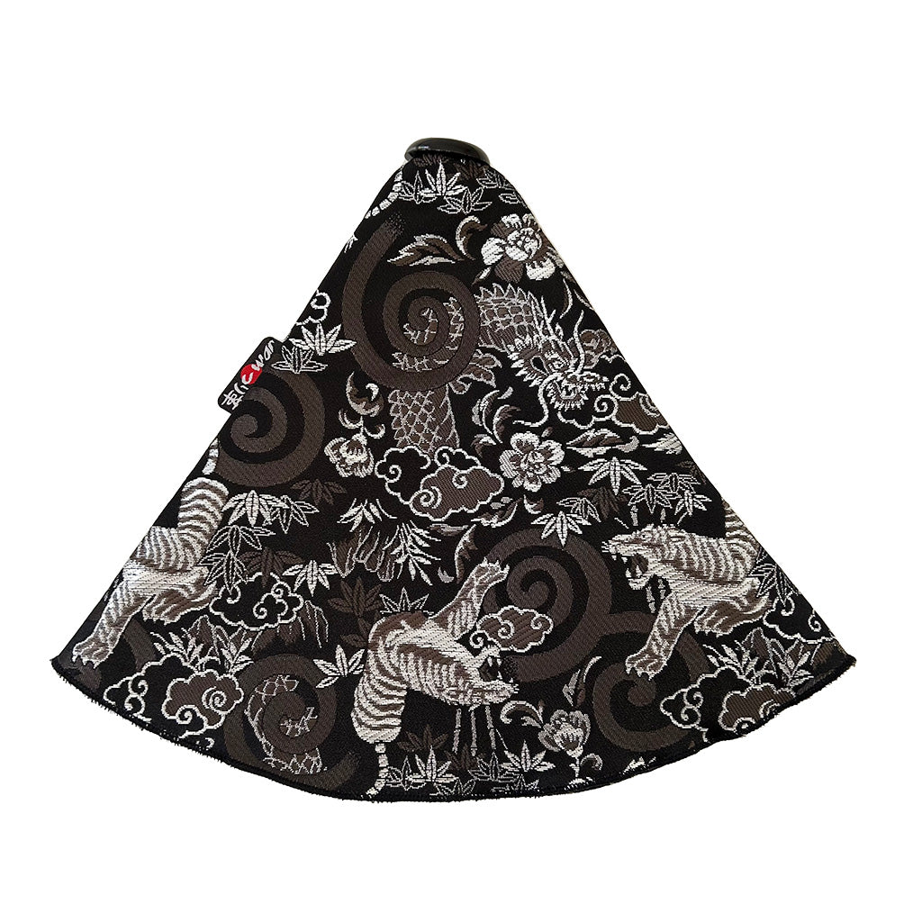 銀色の虎と龍が織り込まれた迫力あるデザインで、存在感あふれる逸品となっています。